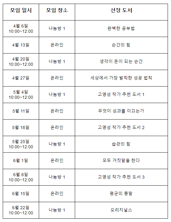 | [독서모임] 씽큐베이션 1기 (0) | 2019.04.01 |